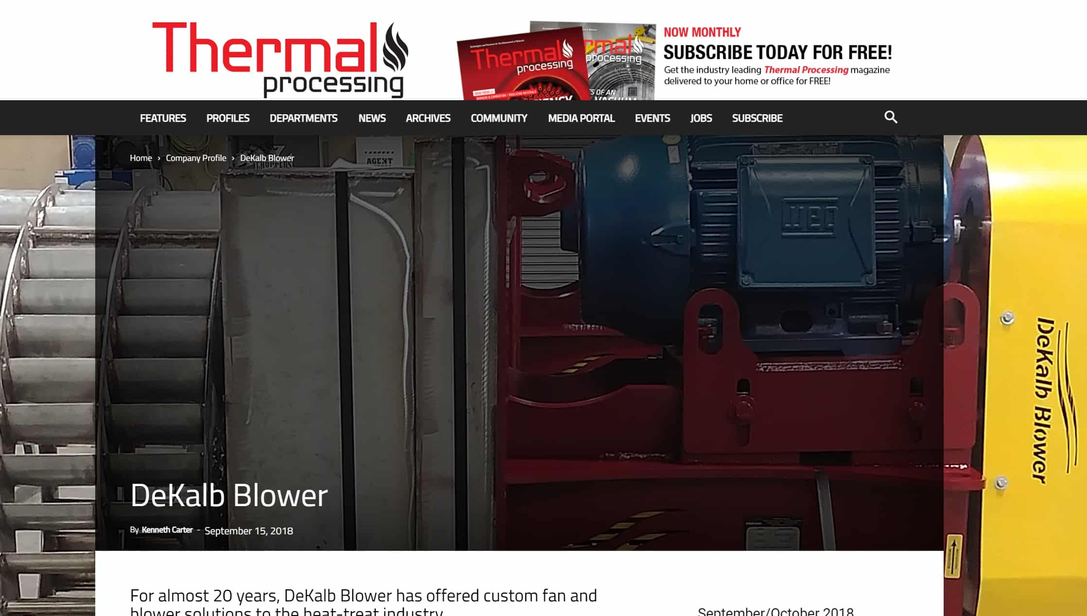 Dekalb Blower Featured On Thermal Processing